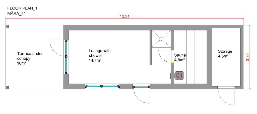 The area of the module is 41 sq.m.