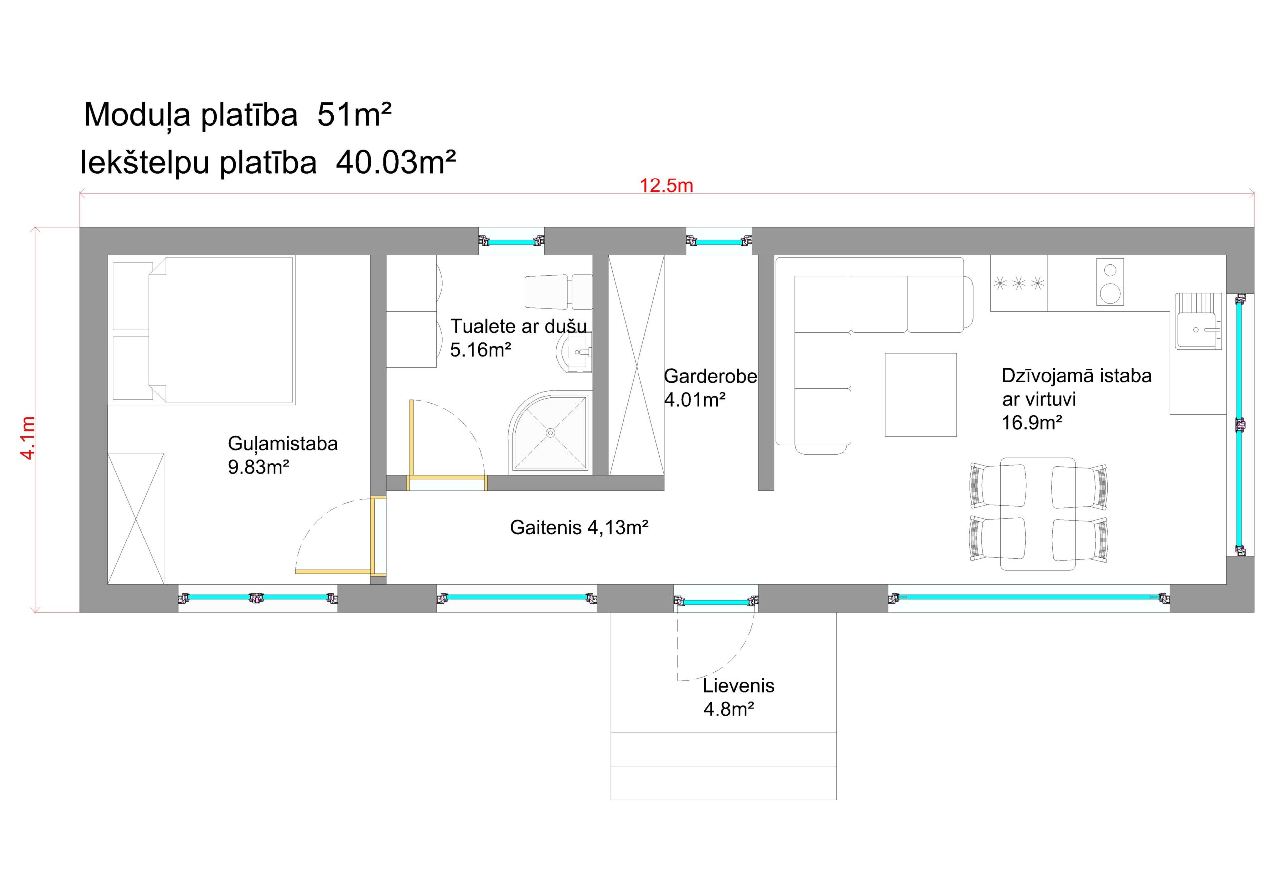- Moduļa konstrukcijas ar siltumizolāciju;