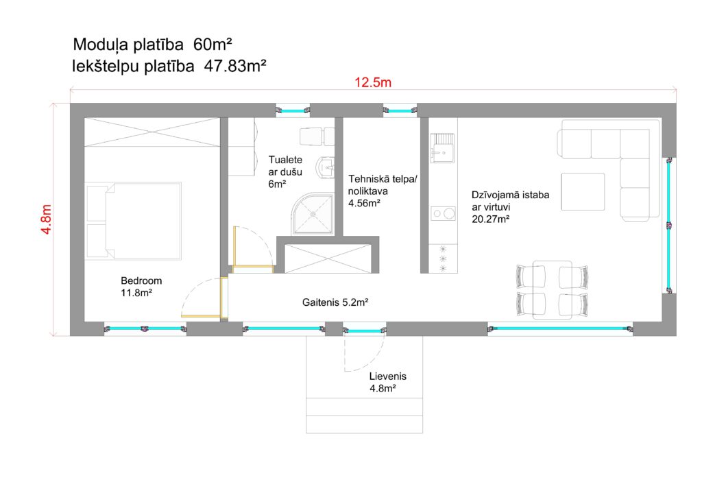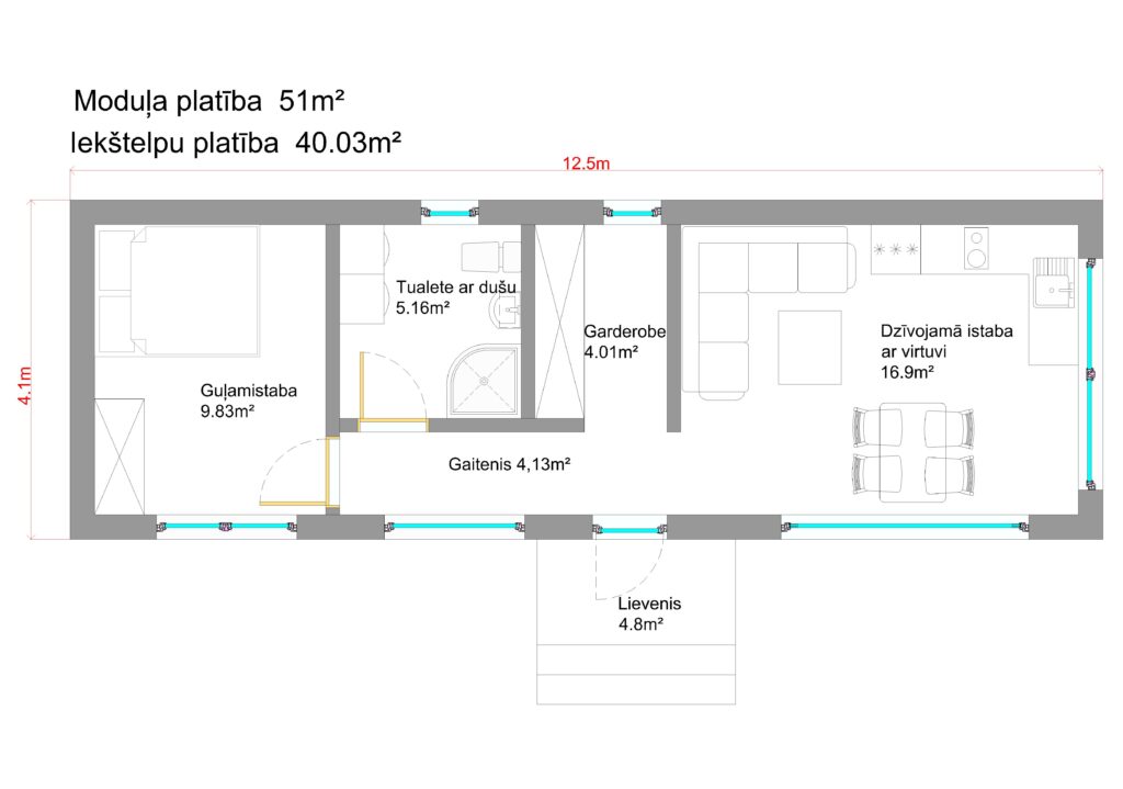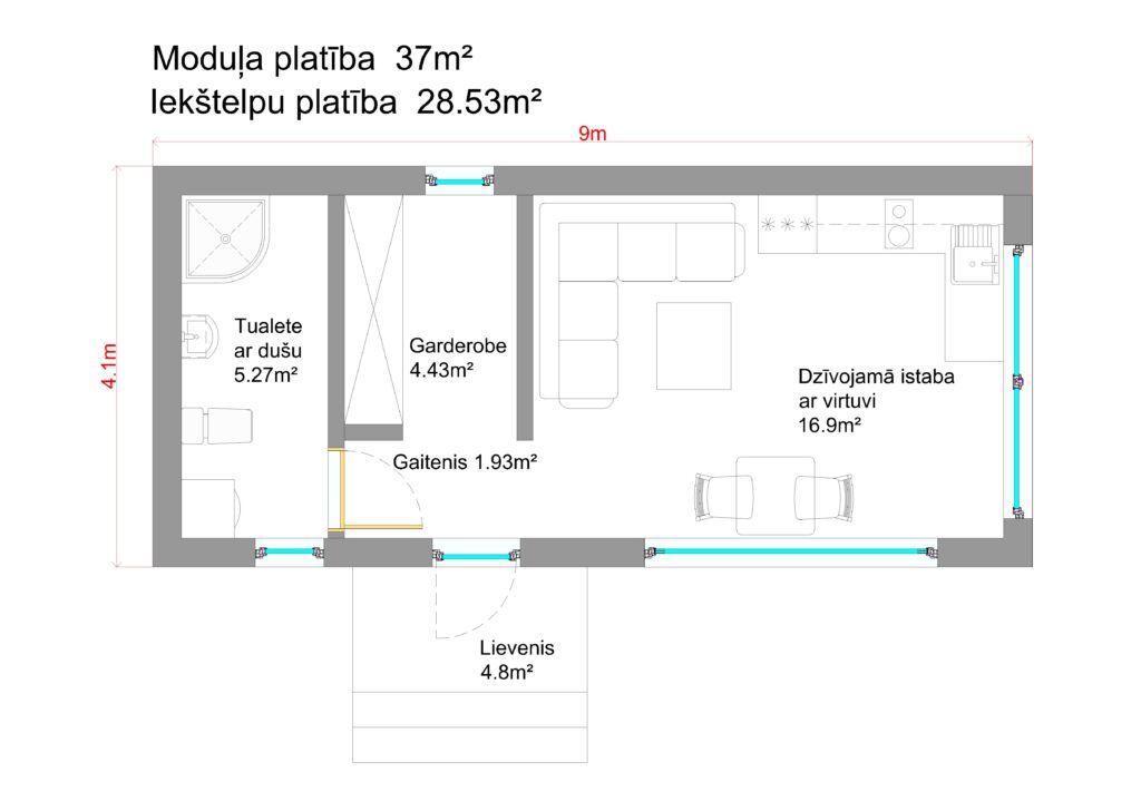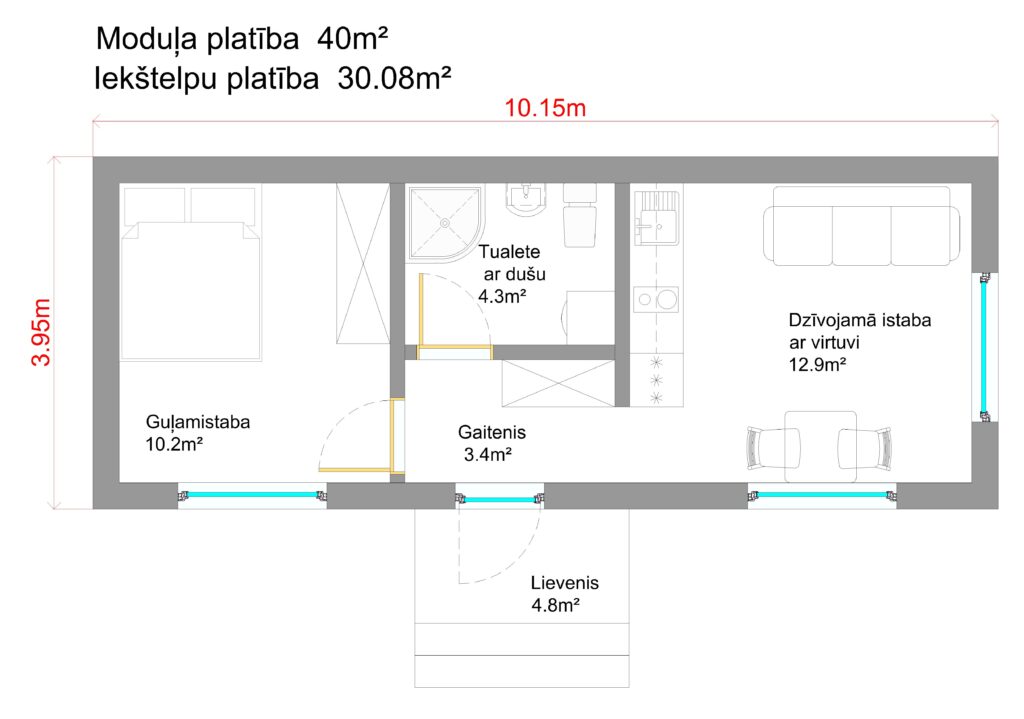 - Moduļa konstrukcijas ar siltumizolāciju;